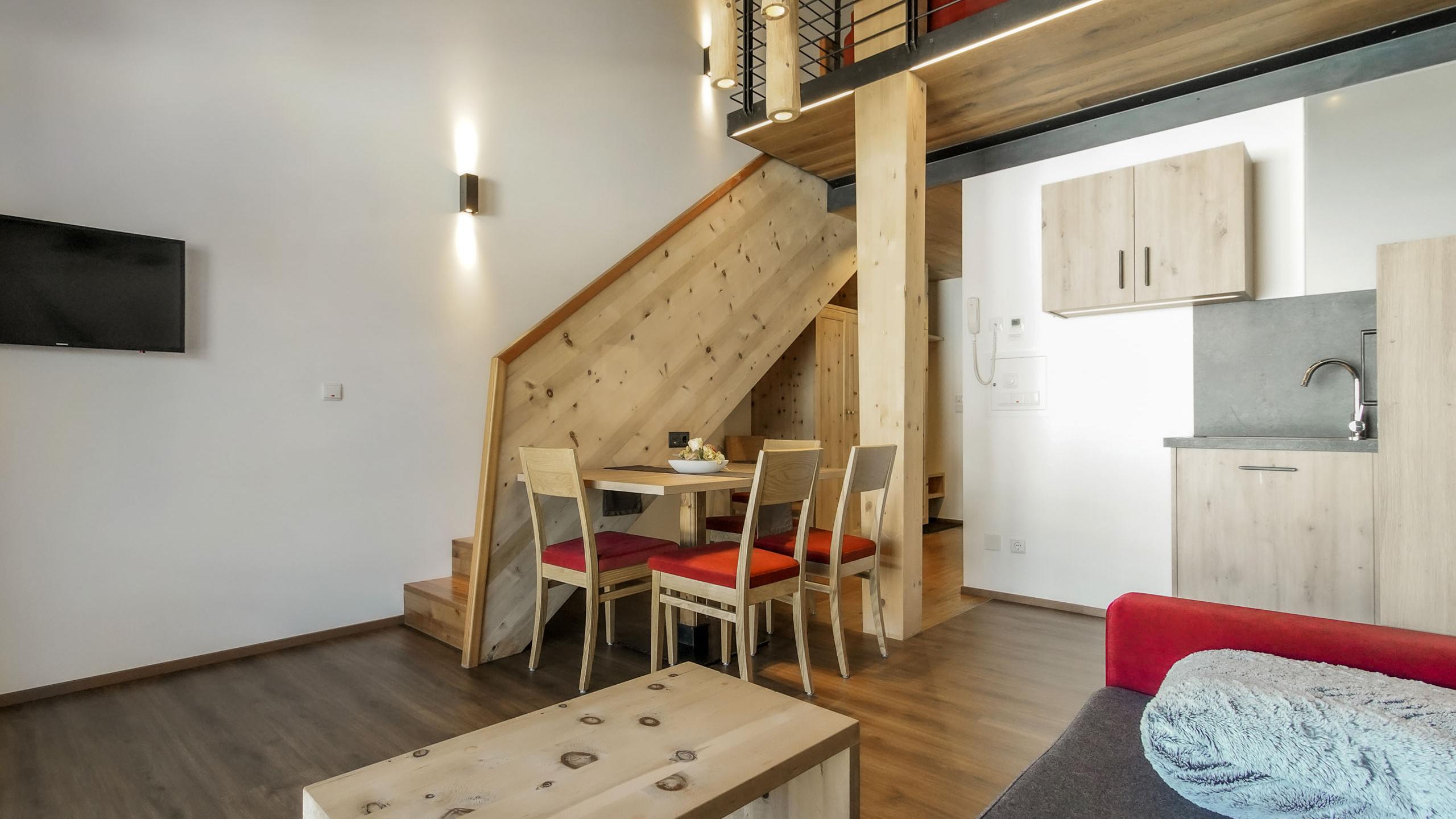 Comfortable apartment with balcony (view of the local mountain or Durnholz), mezzanine floor with double bed, eat-in kitchen with cosy seating area, pull-out couch, stove, oven, coffee maker and kettle, TV, safe, telephone, and Wi-Fi as well as a bright bathroom with spacious shower.